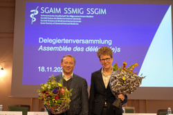 Prof. Dr. méd. Drahomir Aujesky et Dre méd. Regula Capaul ainsi que les membres actuels du comité ont été réélus à l'unanimité par l'assemblée des délégué(e)s lors de l'assemblée des délégué(e)s d'hier pour la législature 2022-2024.